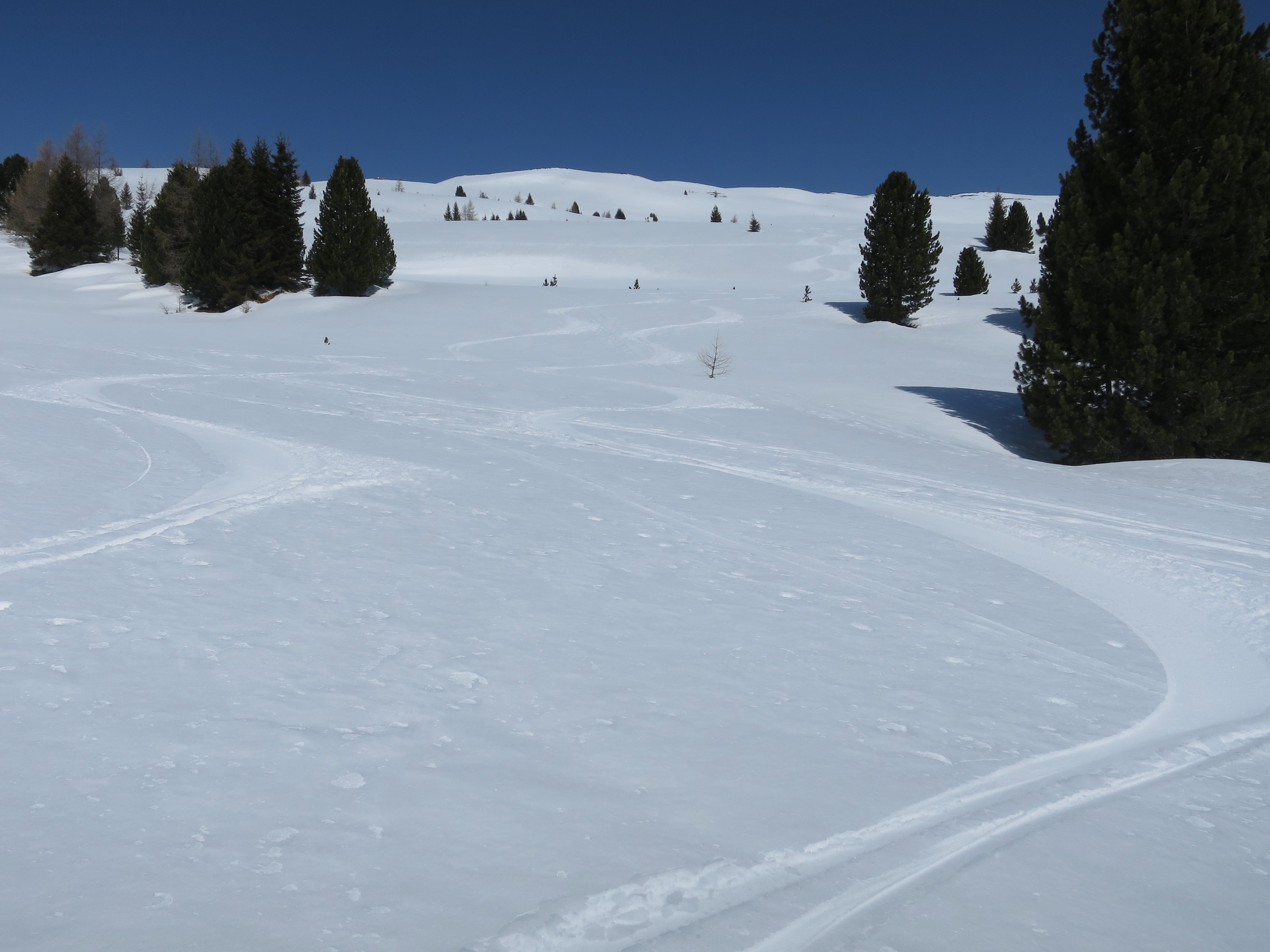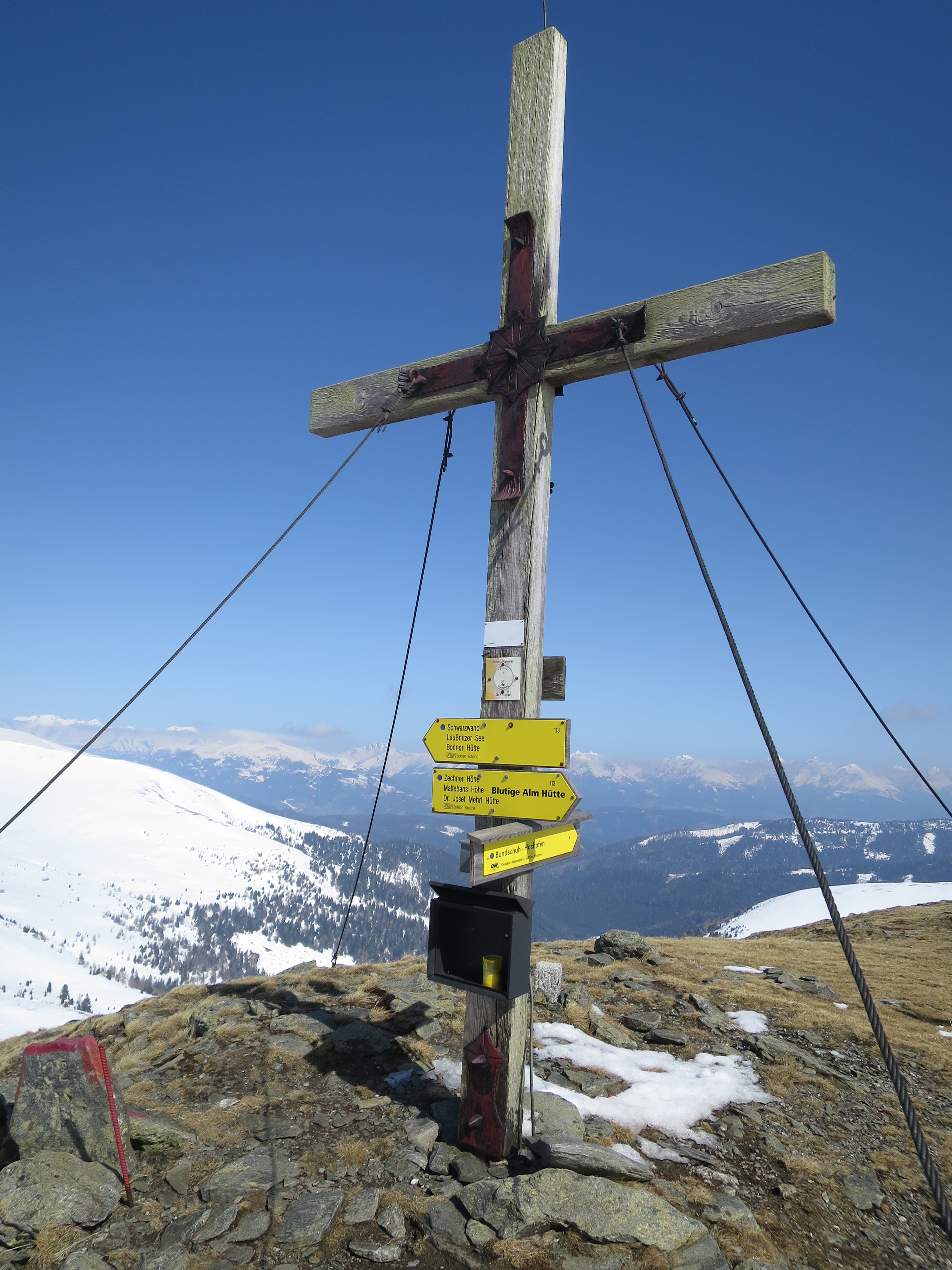 Opombe: Ko pridemo na pobočja Blutige Alm lahko namesto proti levi, na Gaipahöhe, naredimo turo tudi na Zechnerhöhe. Gremo naravnost navzgor mimo gostišča na Blutige Alm in levo od vlečnice. Od tam lahko sledimo grebenu preko sedla na Gaipahöhe ali pa turo zaključimo in posmučamo v dolino v smeri smučarske proge.