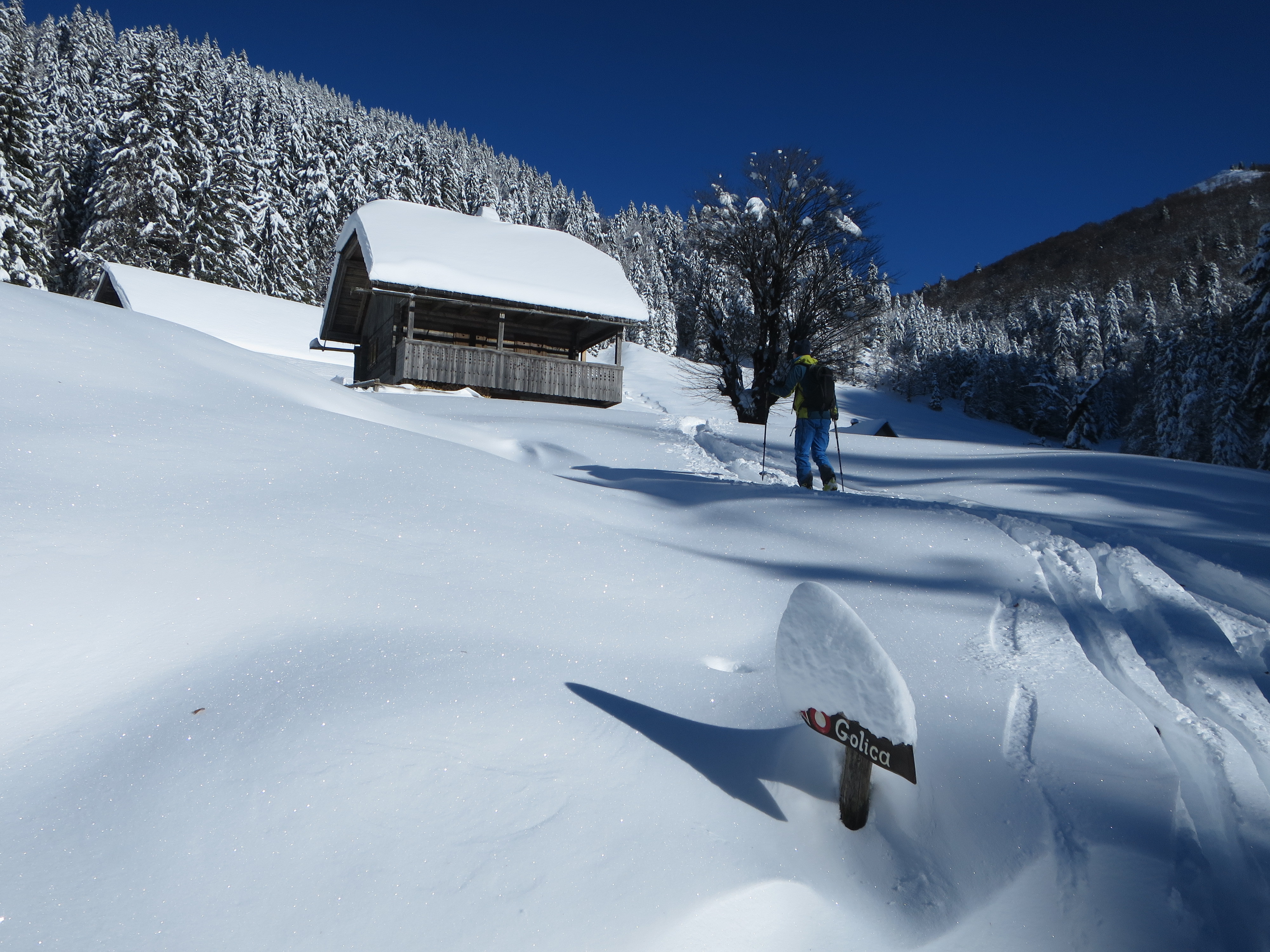 Izhodišče: Parkiramo na začetku urejene sankaške poti na Planini pod Golico.