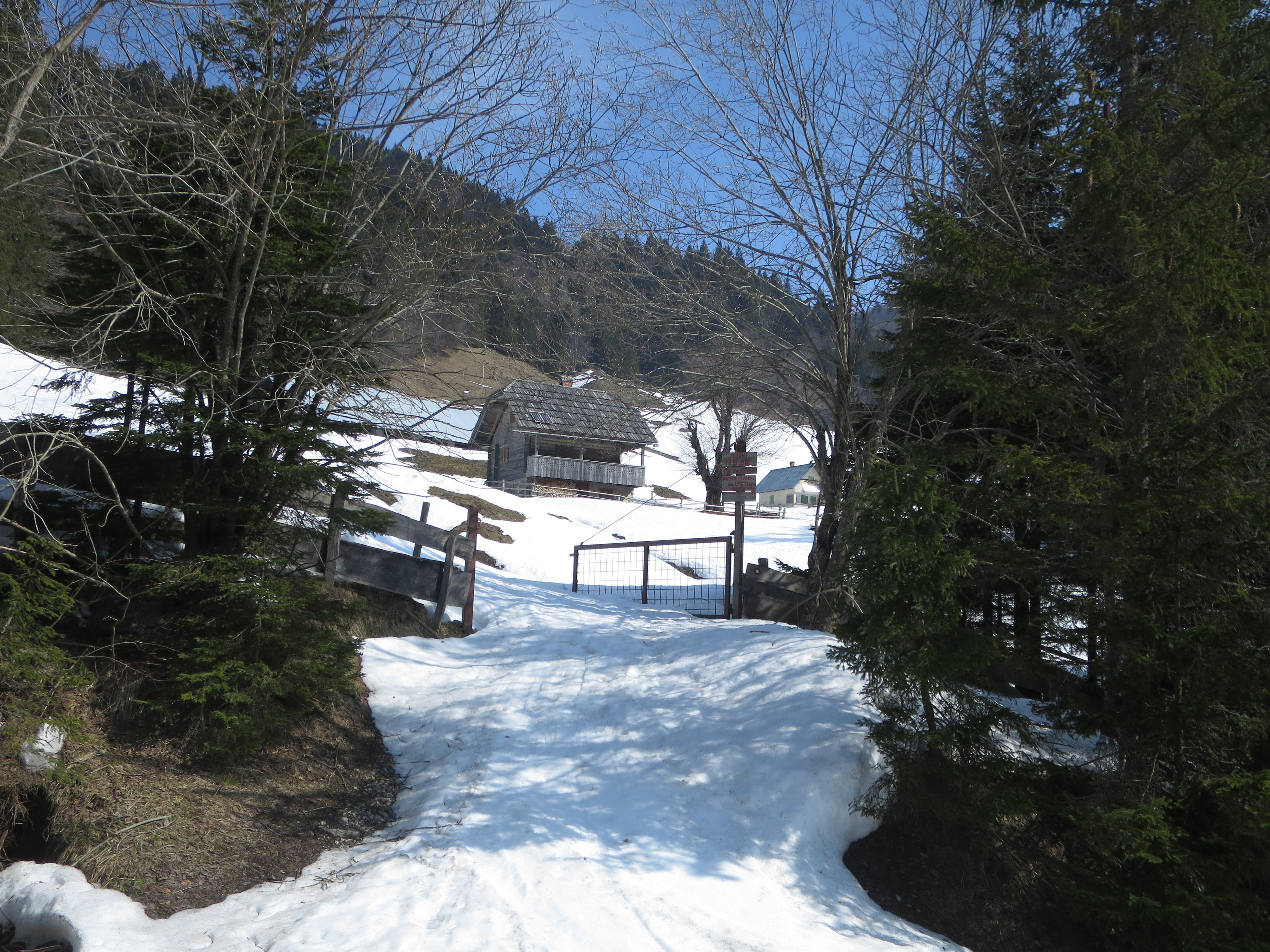Parkiramo na začetku urejene sankaške poti na Planini pod Golico.