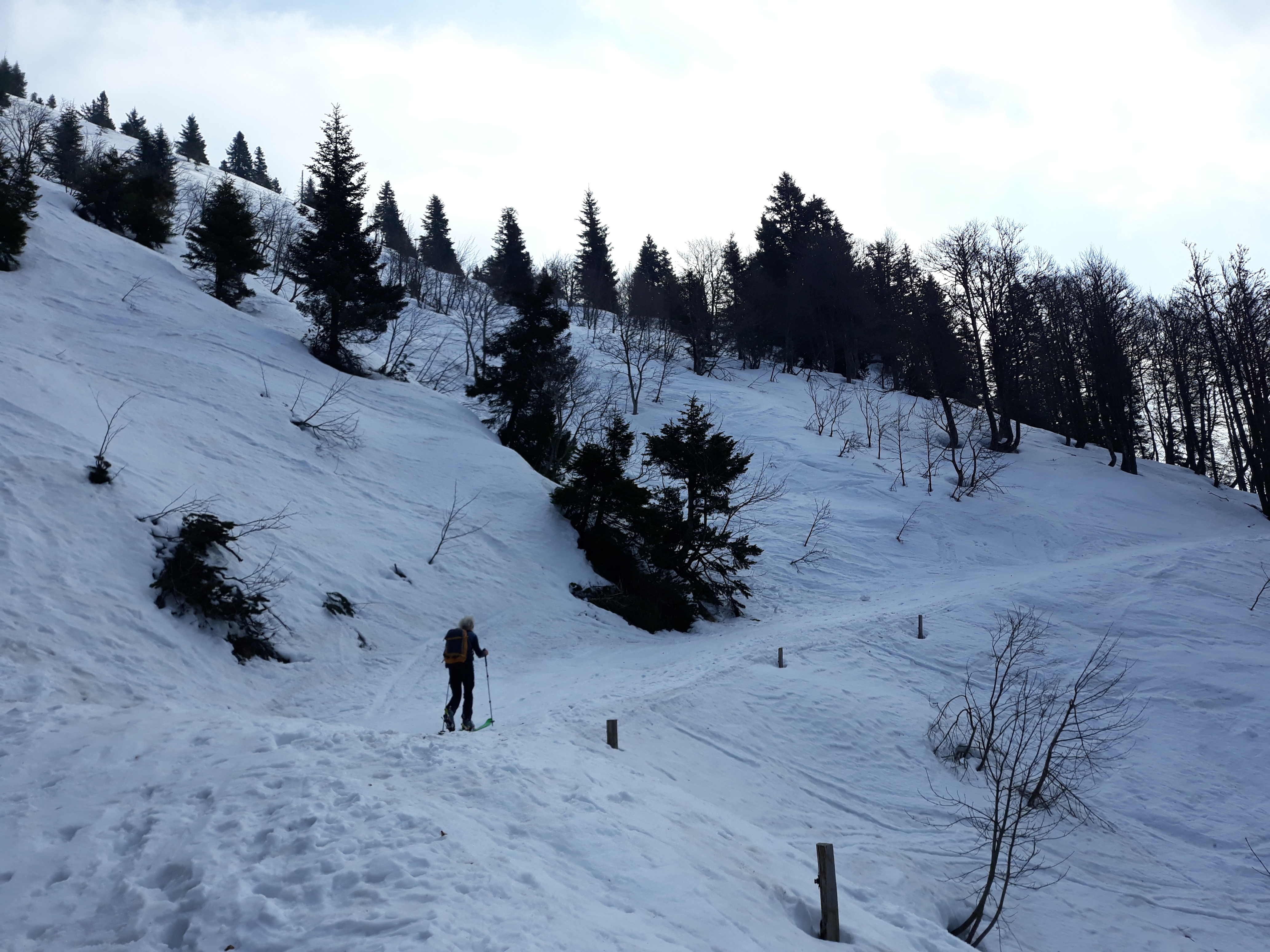 V zgornjem delu si lahko smučanje še popestrimo tako, da se iznad Belske planine vzpnemo na vrh Korenščice (1764 m) zahodno od planine in z njega smučamo do ceste.