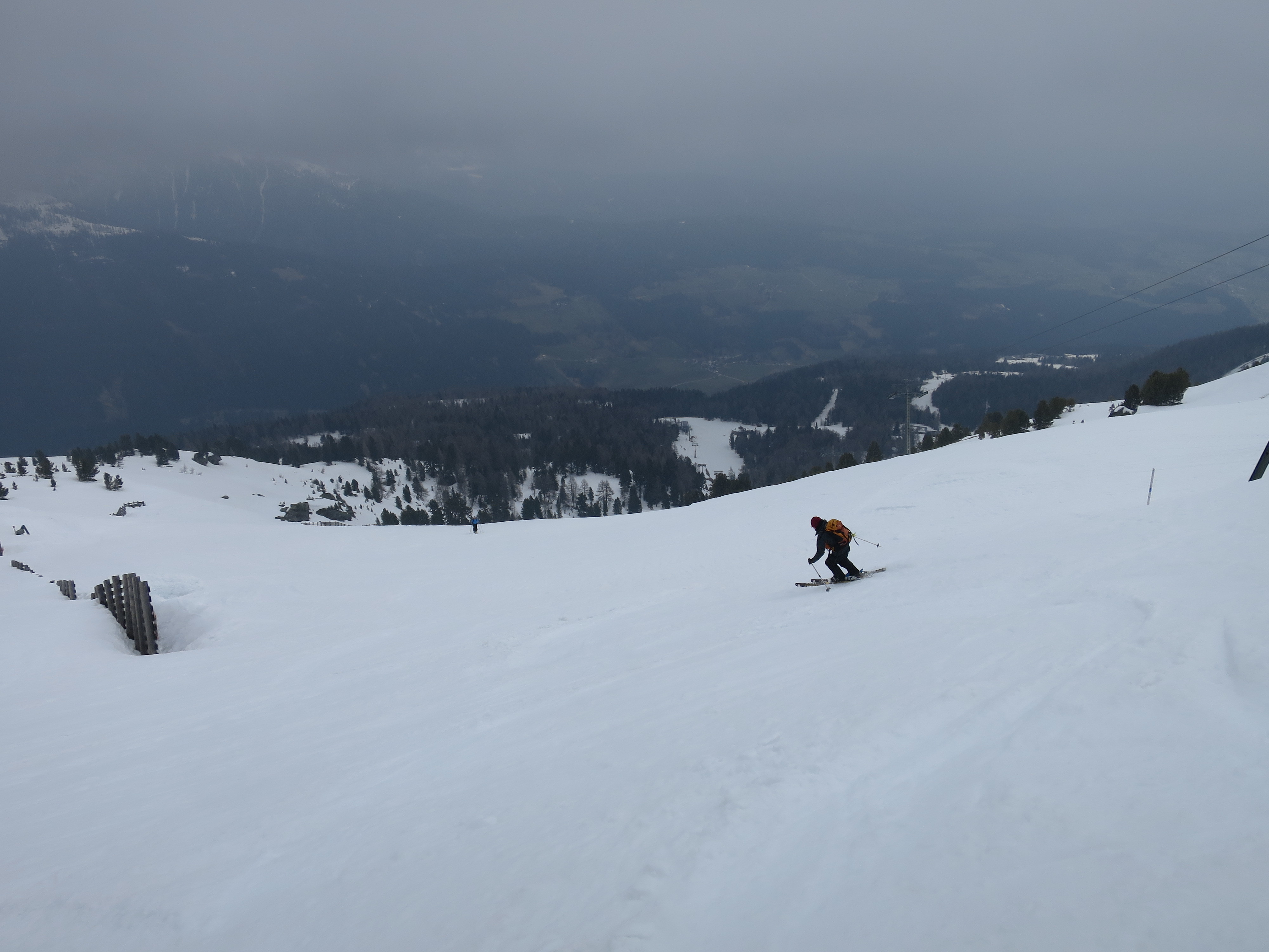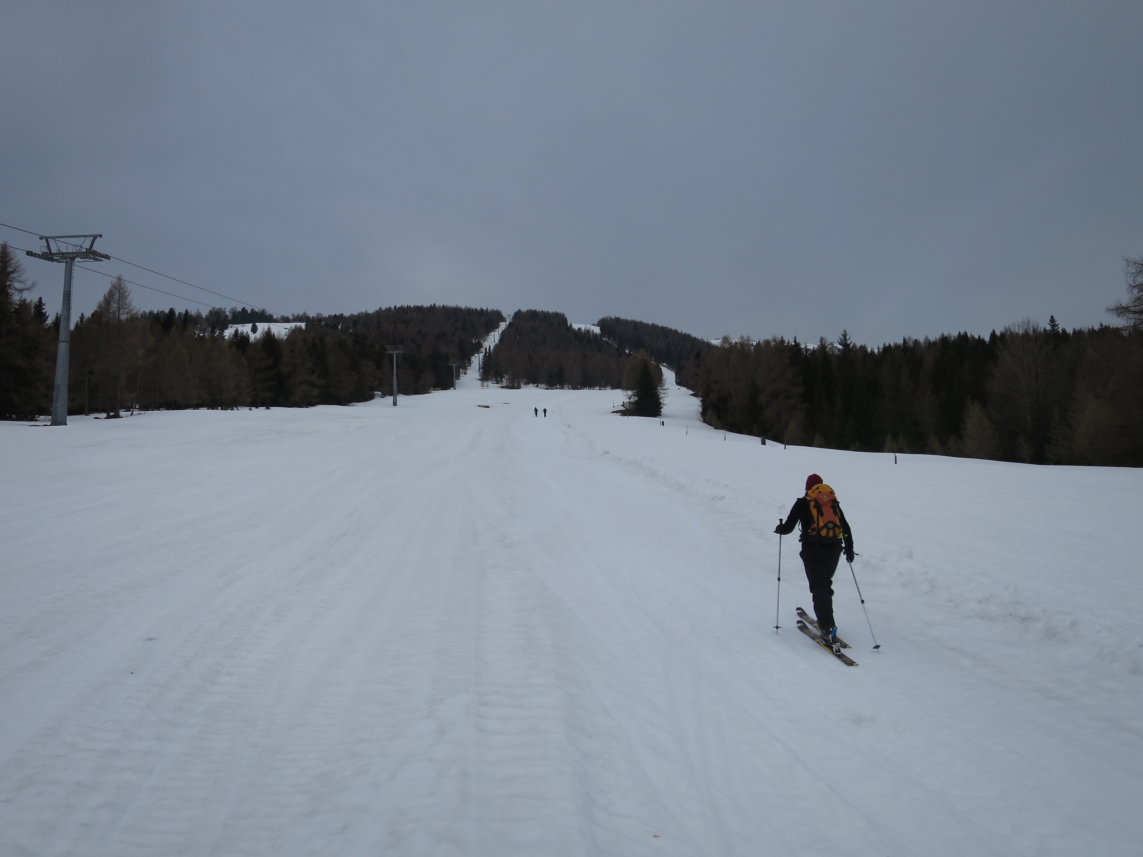 Spust: Glede na razmere lahko smučamo v smeri dostopa ali pa izberemo eno izmed prog smučišča.