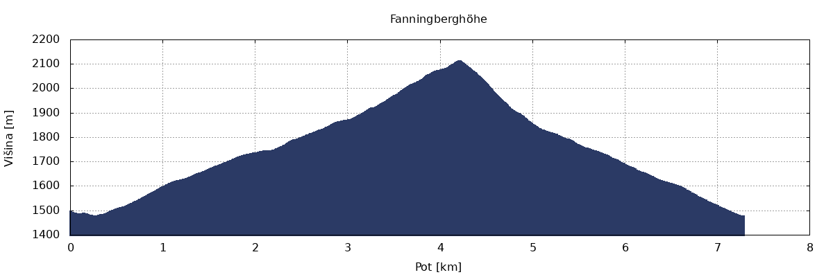 Opombe: Kakšne četrt ure severno po grebenu je še vrh Zehnerriegel, ki je tudi zelo priljubljen turnosmučarski cilj. Zanimivo je, da ima ta na zemljevidu navedeno enako višino kot Fanningberghöhe - 2115 m.
