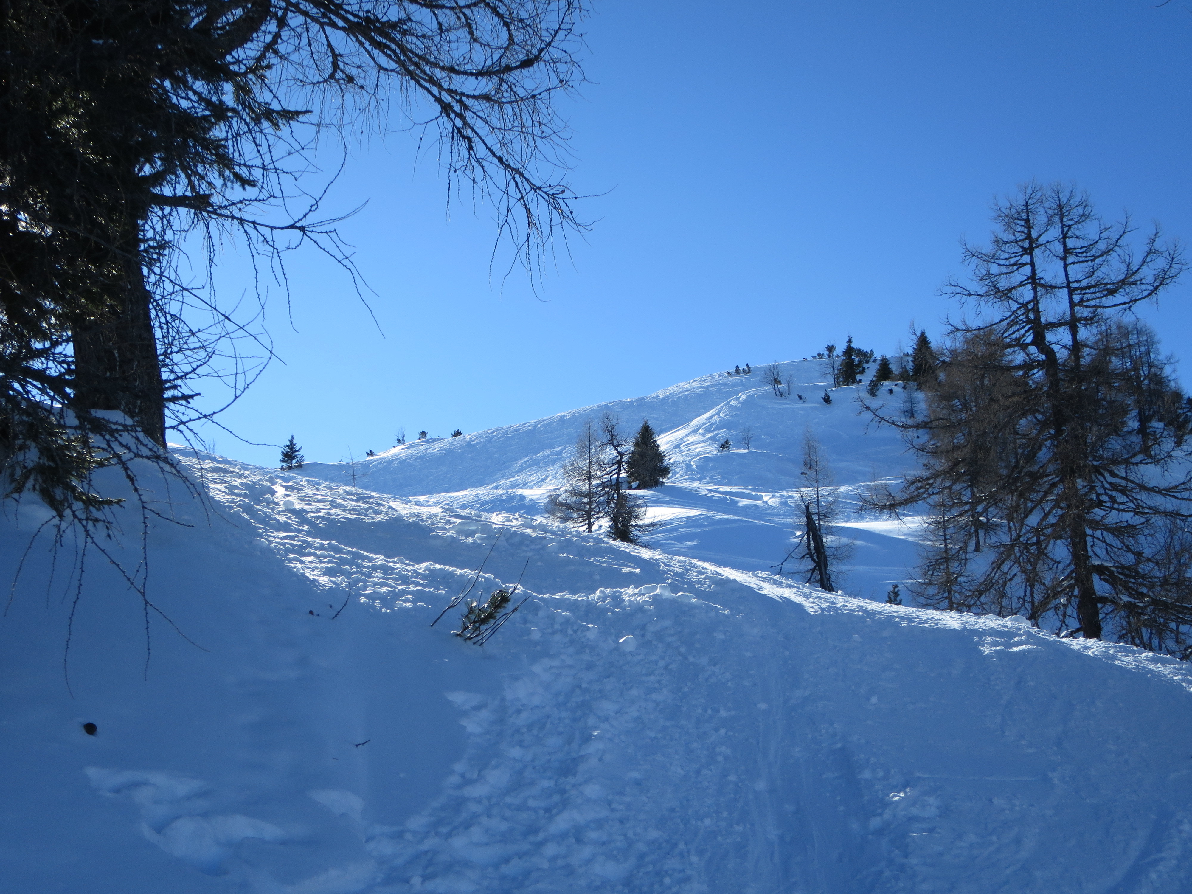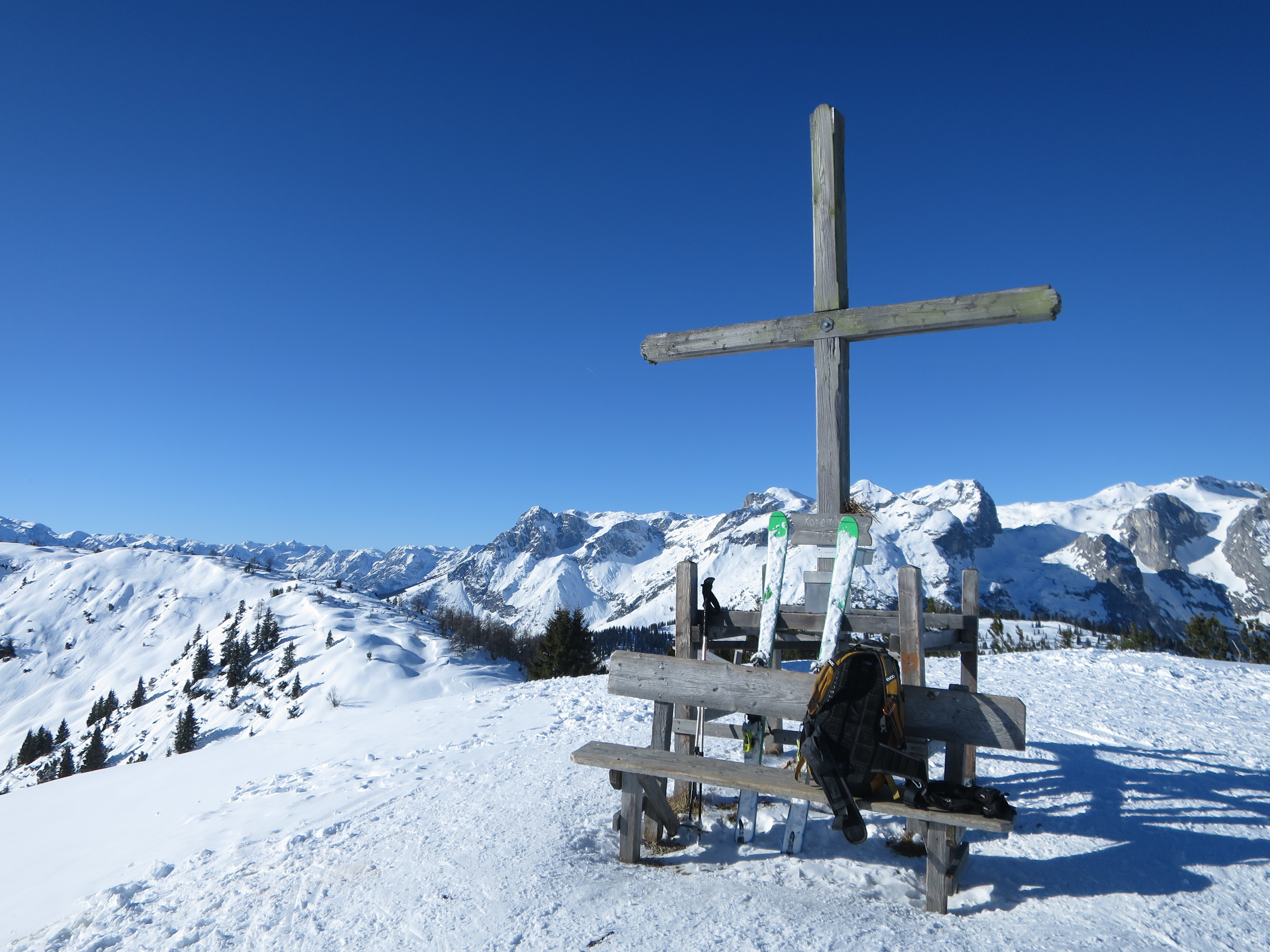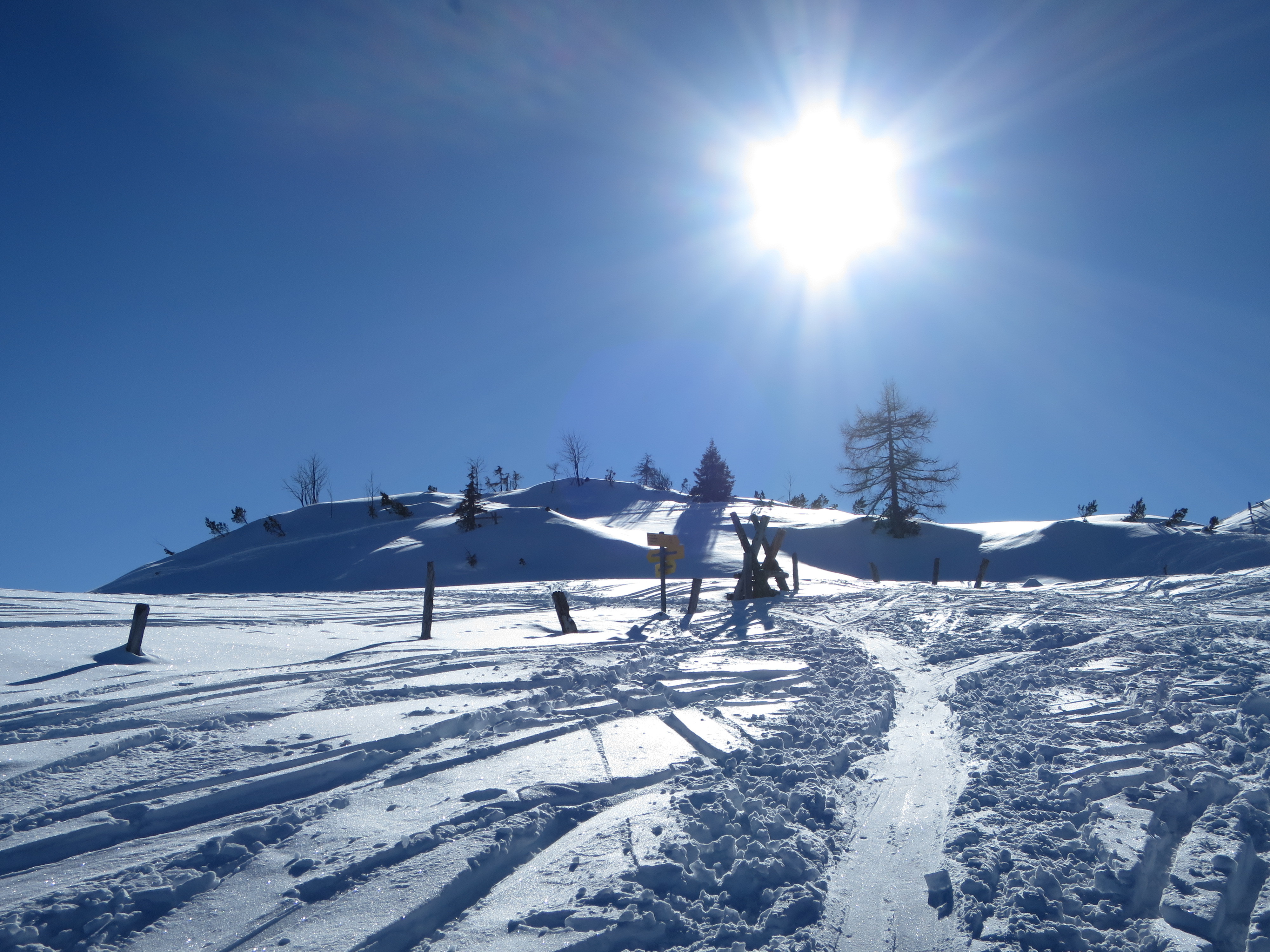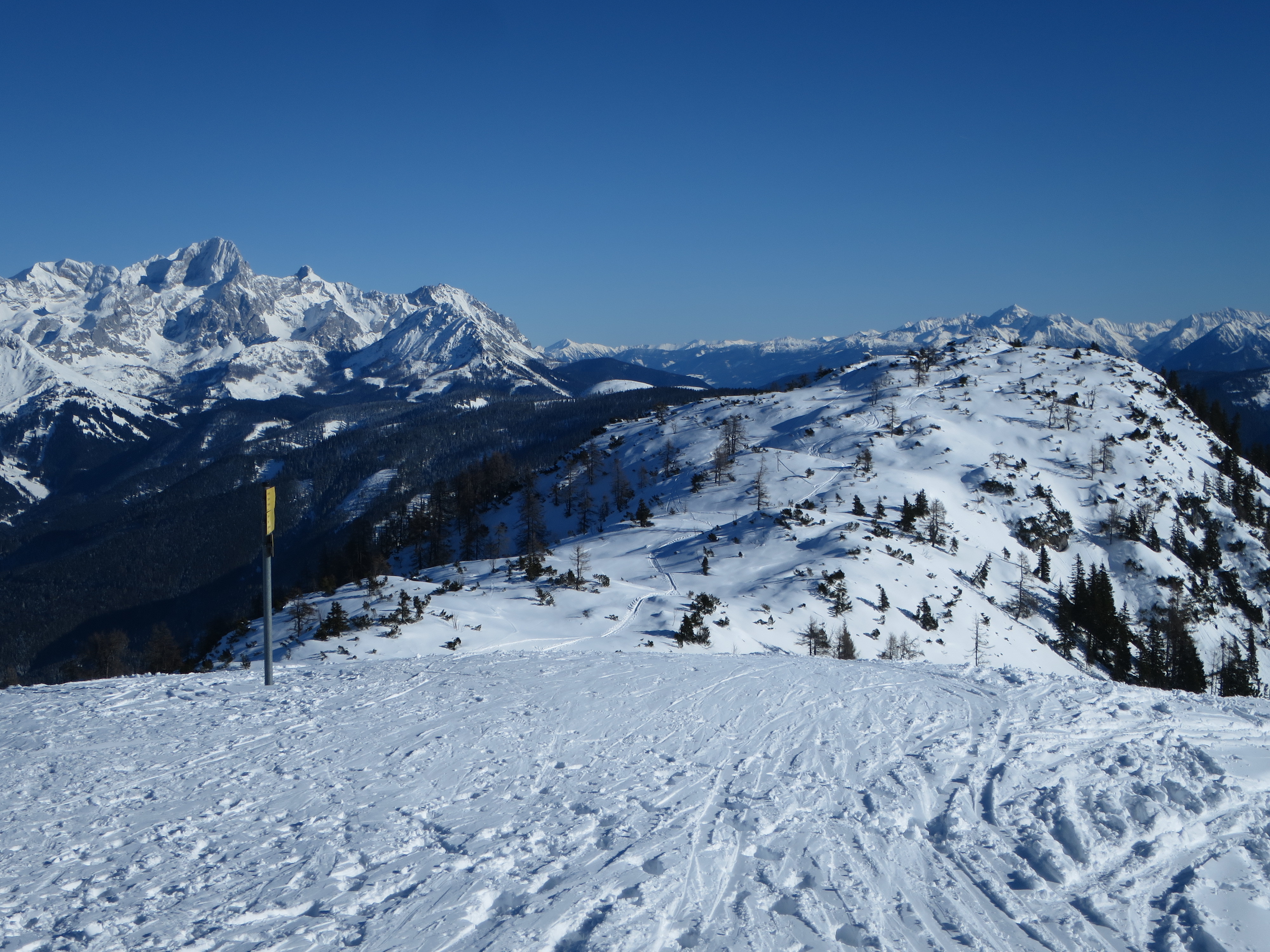 Vzpon: S parkirišča gremo najprej po smučišču in nato po gozdni cesti proti Karalm. Ta cesta prečka tri grabne, ki so lahko plazoviti ob neugodnih razmerah. Po zadnjem od njih zagledamo planino Karalm, a se pred njo usmerimo levo navzgor proti poraščenem delu pobočja. Tu se srečamo z malo večjo strmino in po nekaj obratih pridemo na greben. Sledi še položen vzpon proti desni in že smo pri križu na vrhu. Odpre se nam mogočen razgled na vse strani - pred nami je Hochkönig, na severu so Tennengebirge, vzhodno Gosaukamm, na jugu pa vidimo Nizke in Visoke Ture.