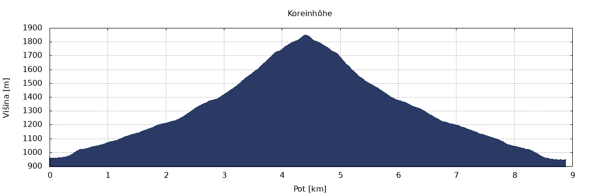 Izhodišče: 956 m Višinska razlika: 894 m Čas vzpona: 2:30 h Zahtevnost: lahka Nevarnost snežnih plazov: zmerna Najprimernejši čas: december - februar