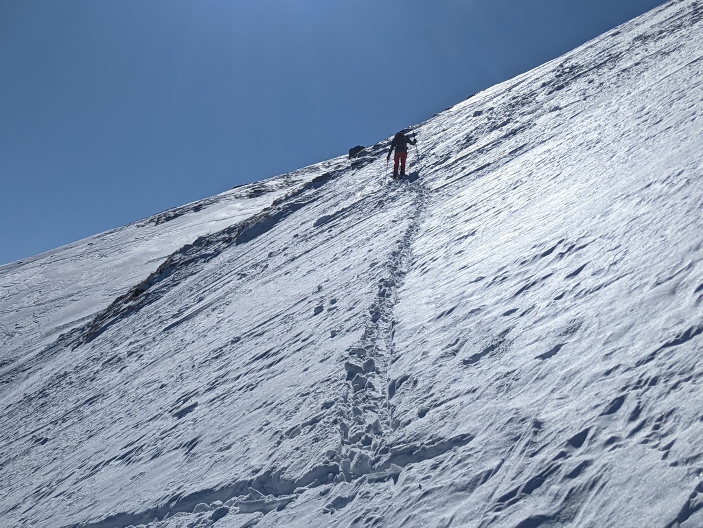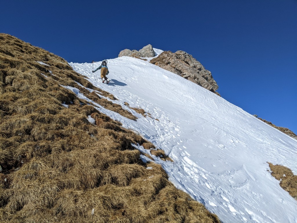 Tura je enostavna do zadnjega strmega vzpona na greben. Po sneženju in otoplitvi je v tem delu velika nevarnost plazov. Za zadnjih 10m pod vrhom je priporočljiv vsaj cepin.
