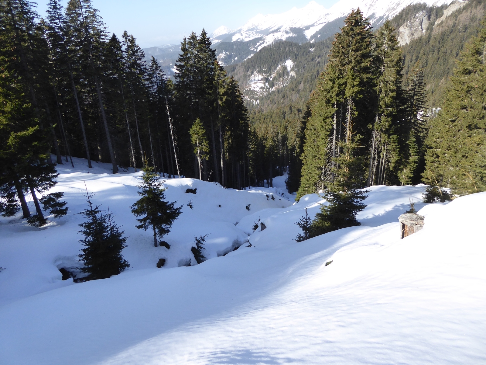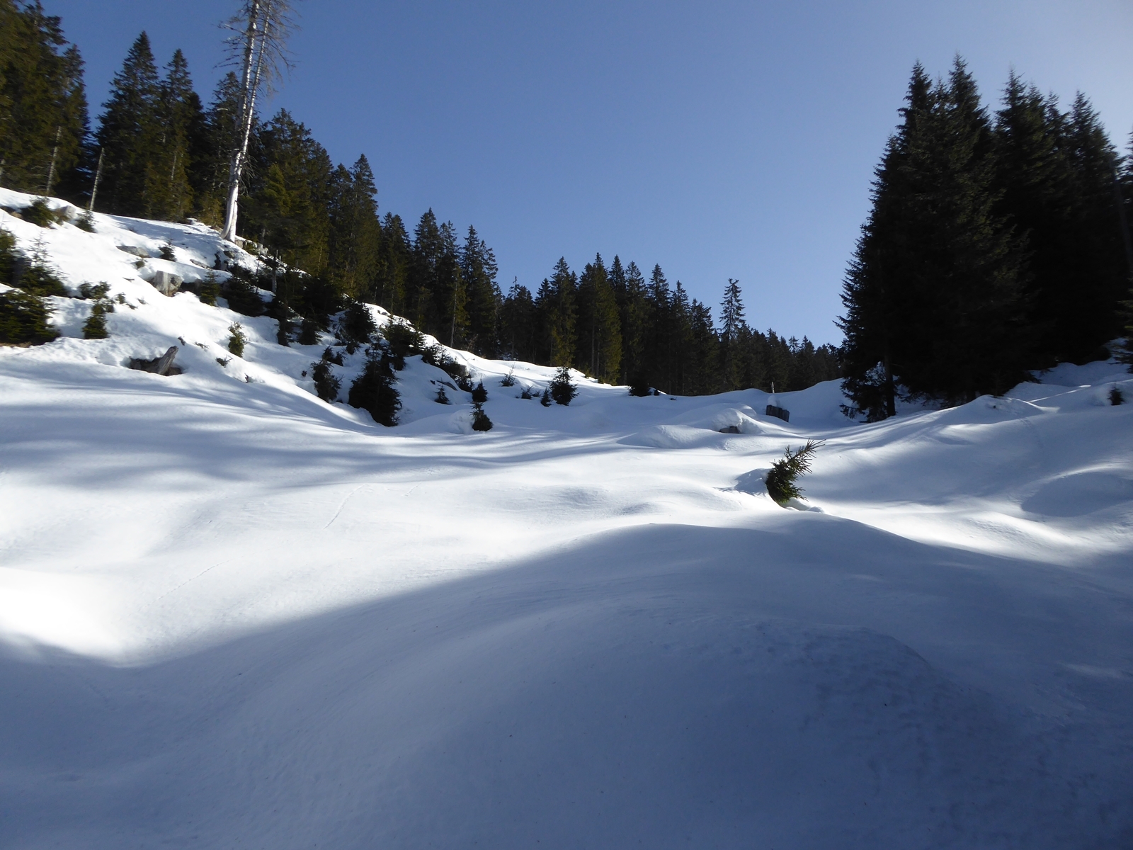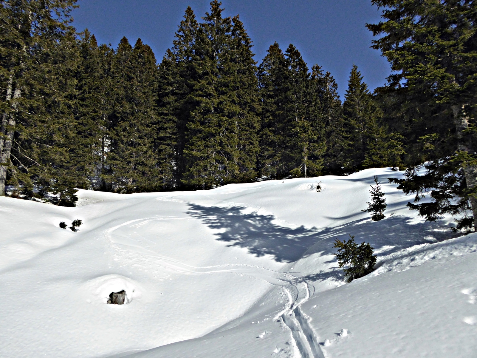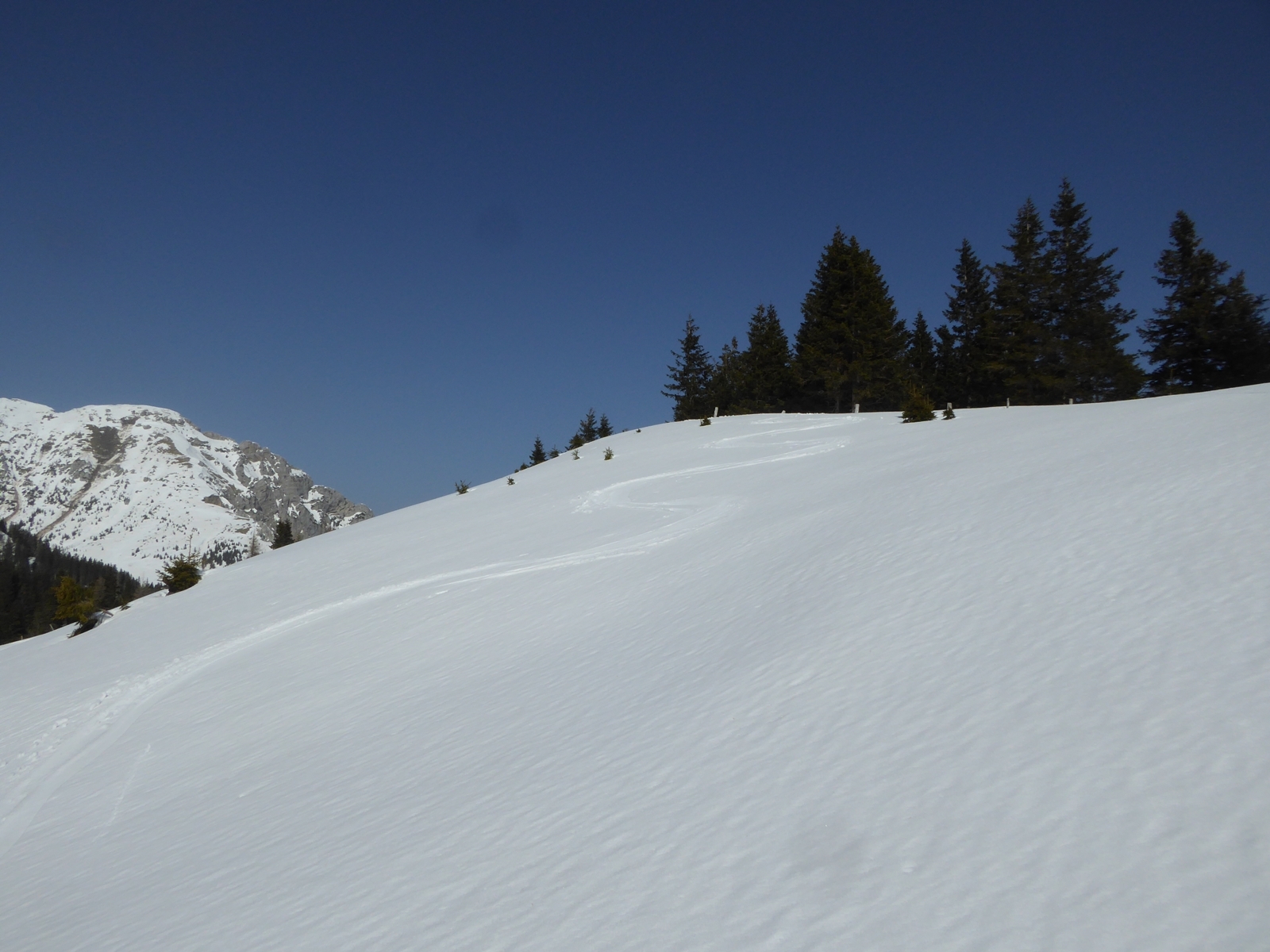 Spust: Smučamo po smeri pristopa.