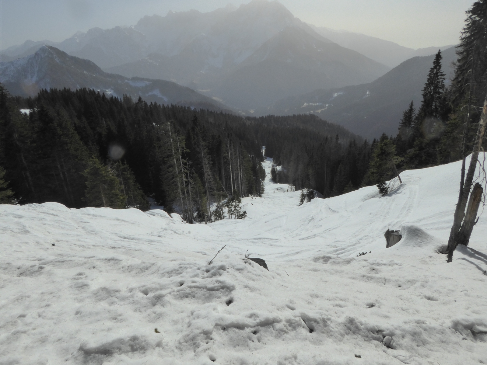 Lahko bi se vzpeli na Plešivec in smučali v Medvodje po dolini Košutnika, a to ne bi bila več ista tura.