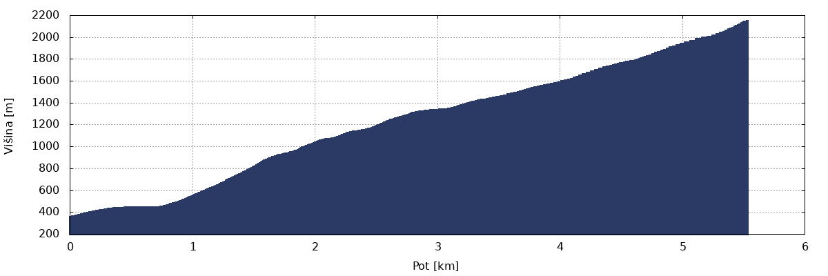 Najvišja točka: 1735 m (46.327506965026259, 13.455924969166517)