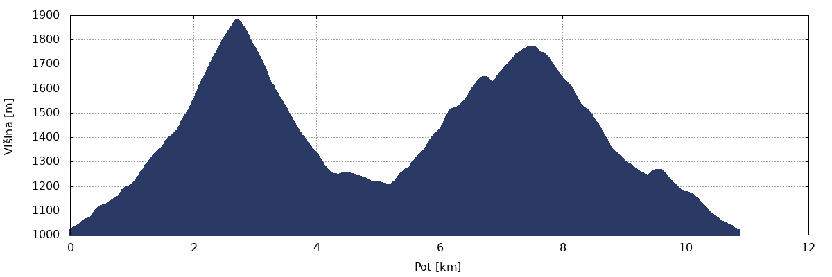 Izhodišče: 1021 m (46.472549, 14.051021)
