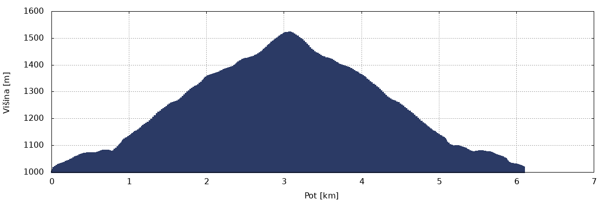 Najvišja točka: 1526 m (46.3721117, 14.8907117)